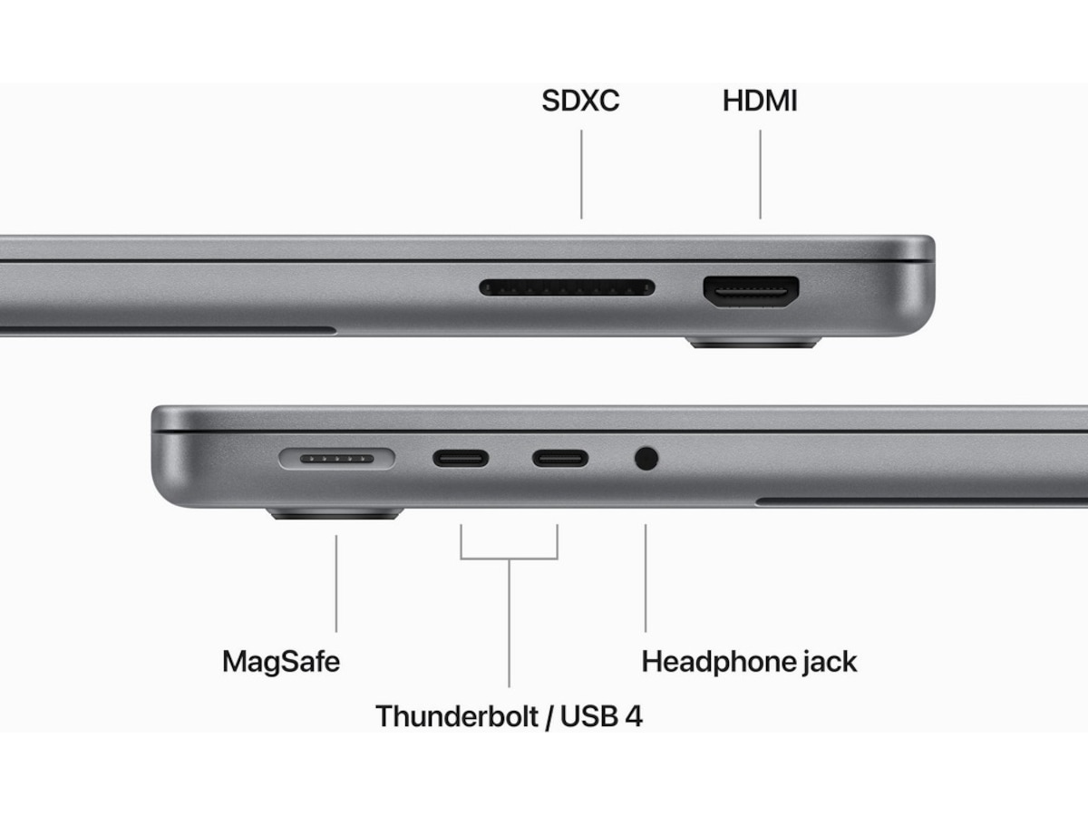 - KOBLE TIL ALT – Denne MacBook Pro har MagSafe-ladeport, to Thunderbolt- / USB 4-porter, en SDXC-kortplass, en HDMI-port og en hodetelefonutgang. Få rask trådløs tilkobling med WiFi 6E(5) og Bluetooth 5.3. Støtte for én ekstern skjerm.