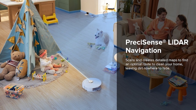 Skanner og lager detaljerte kart for å finne en optimal rute for å rengjøre hjemmet ditt, og etterlater ingen steder å skjule smuss.