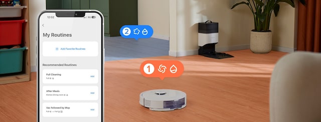 Bestem når robotstøvsugeren med tilpassede rengjøringstider og angi rutiner for bestemte områder.