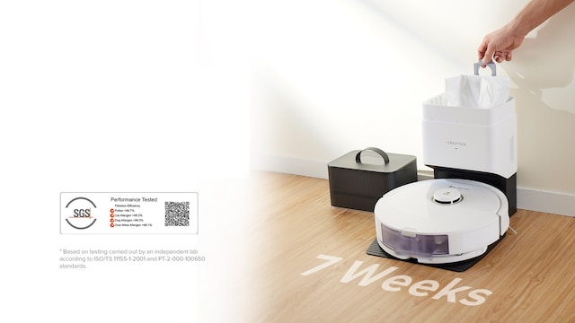 *Basert på intern testing utført av produsenten. Sammenlignet med Roborock S7.