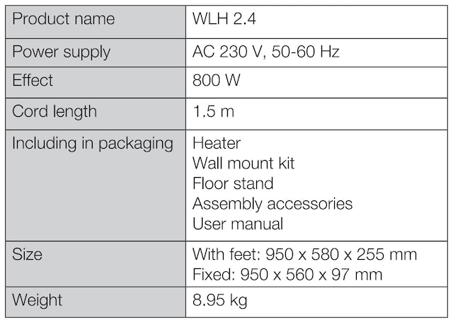 Andersson WLH 2.4 er en slank og allsidig oljeovn med en rekke praktiske funksjoner. Denne ovnen er ideell for fleksibel plassering, enten den settes direkte på gulvet eller monteres på veggen.