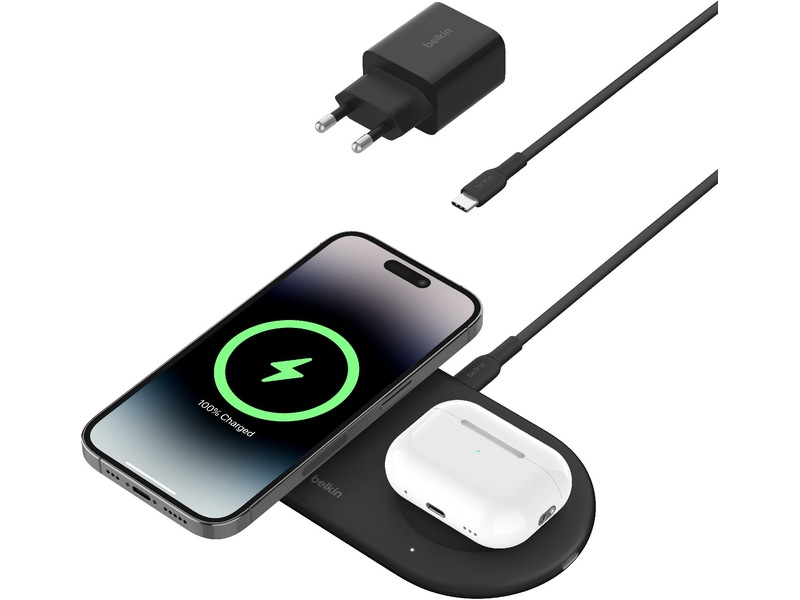 Belkin Qi2 15W 2-in-1 trådløs lader (sort)