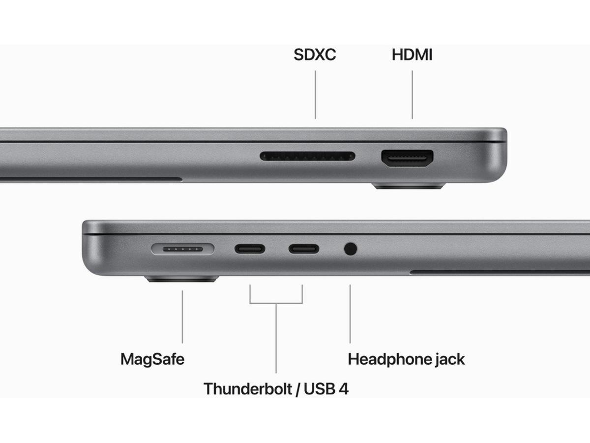 - KOBLE TIL ALT – Denne MacBook Pro har MagSafe-ladeport, to Thunderbolt- / USB 4-porter, en SDXC-kortplass, en HDMI-port og en hodetelefonutgang. Få rask trådløs tilkobling med WiFi 6E(5) og Bluetooth 5.3. Støtte for én ekstern skjerm.