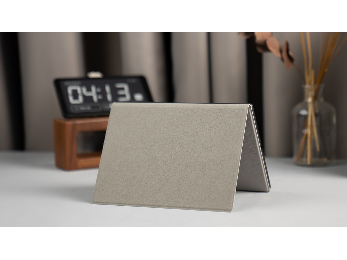 Det magnetiske beskyttelsesdekselet, i en beroligende tregrå, er utformet for å beskytte Tab Mini C og stiften. Finishen føles delikat ut, og magnetene er kraftige nok til å holde alt sikkert. Ved å feste enheten på dekselet kan du bruke dem uansett hvor du er.