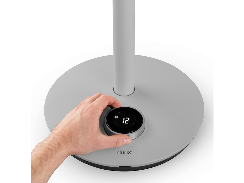 Whisper Flex tilbyr mange intuitive kontrollalternativer, inkludert vriknappen i aluminium med høyoppløst LCD-skjerm i midten av grensesnittet. Å, og ikke gidd å stå opp. Bare bruk Whisper Flex med Duux smarttelefon-appen eller fjernkontrollen som festes magnetisk på baksiden av enheten.