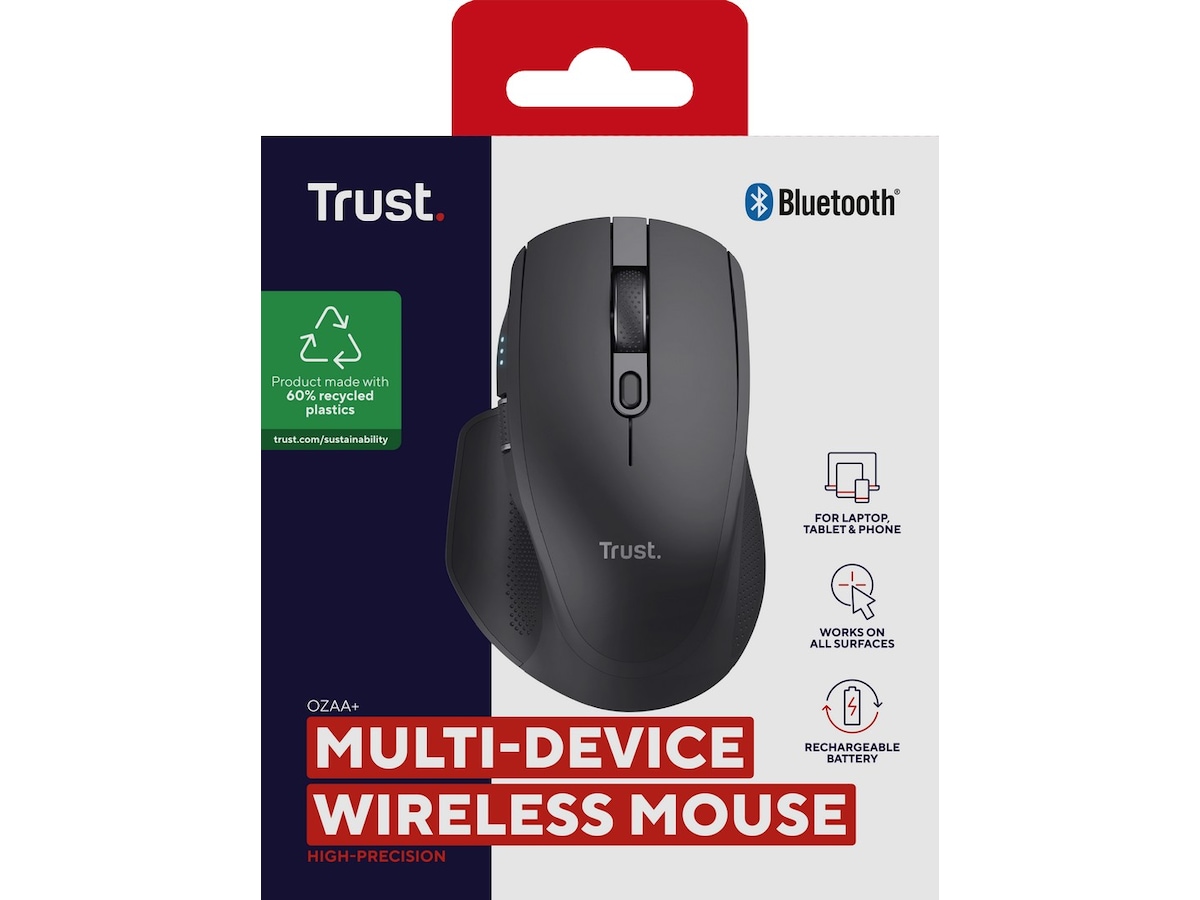 Trenger du å raskt veksle mellom å jobbe på flere enheter? Ozaa+ er designet for akkurat det. Med kapasitet for flere tilkoblinger kan du koble til opptil tre enheter trådløst samtidig via en enkelt USB 2,4 GHz-mottaker eller 2x Bluetooth.