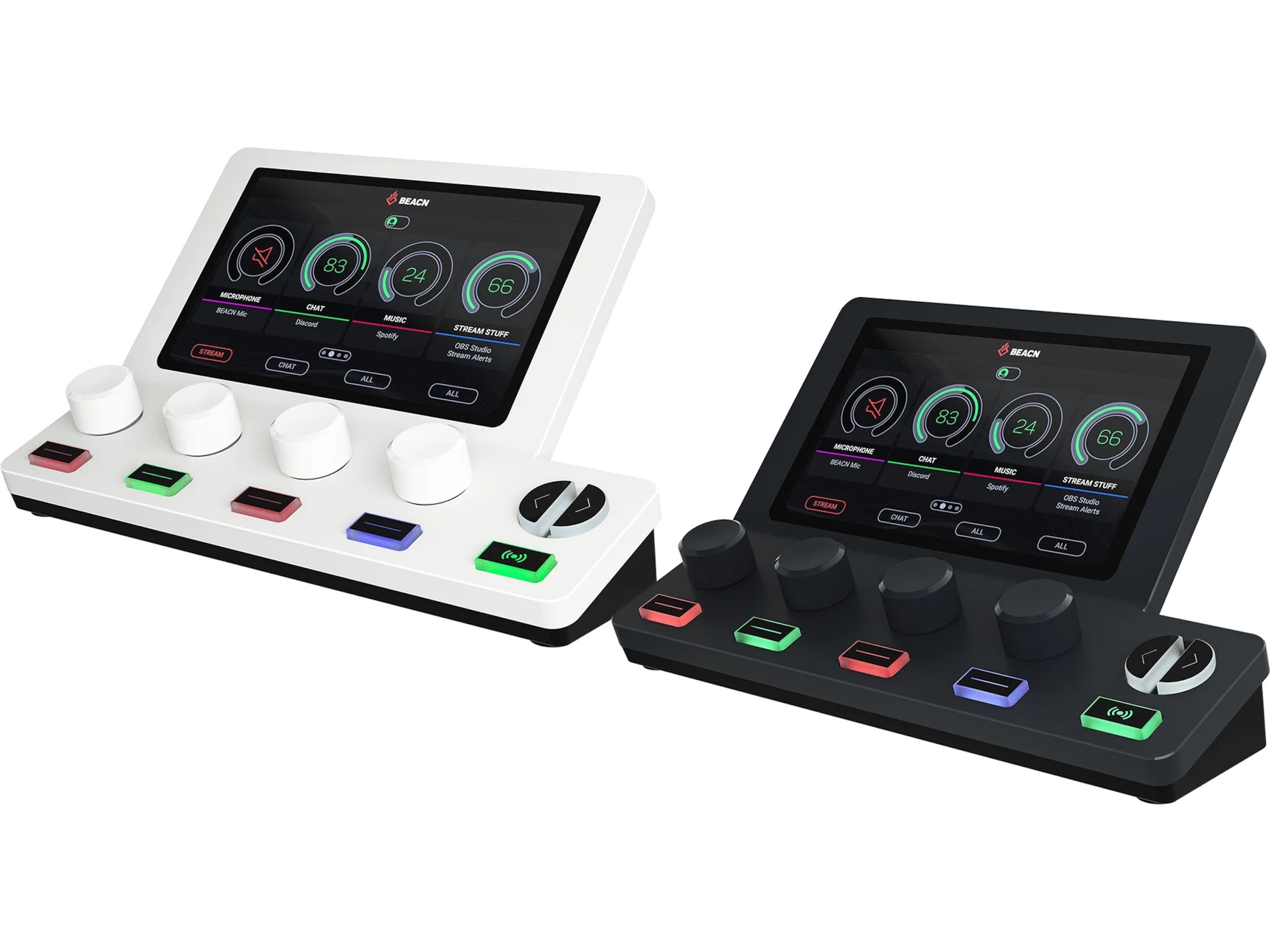 Spill, musikk, systemlyder, videosamtaler, nettlesere, headset, lydgrensesnitt og mikrofoner kan enkelt legges til BEACN Mix Create-knotter. Konfigurer egendefinerte undermikser, rute lyd til og fra hodetelefonene dine, chatmikrofonutgang og kringkast strøm, definer egendefinerte dempemoduser, lagre profiler og mer med vår gratis BEACN-app.