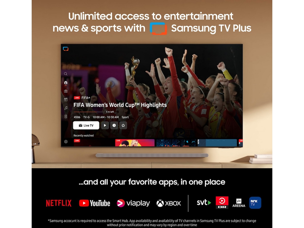 • Kostnadsfri tilgang til filmer, serier, sport og nyheter med Samsung TV Plus.