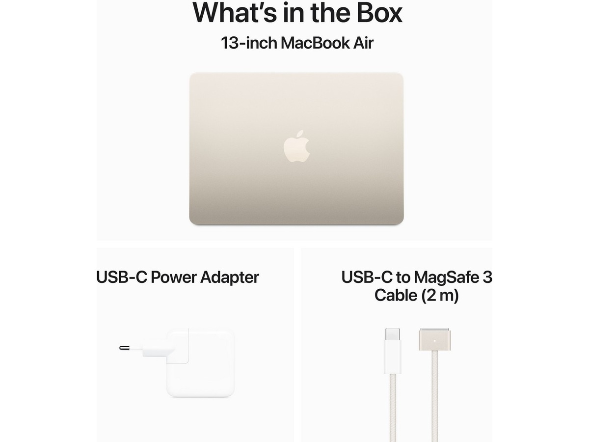 Inkludert tilbehør USB-C-strømadapter, USB-C til MagSafe 3-ladekabel (2 m)