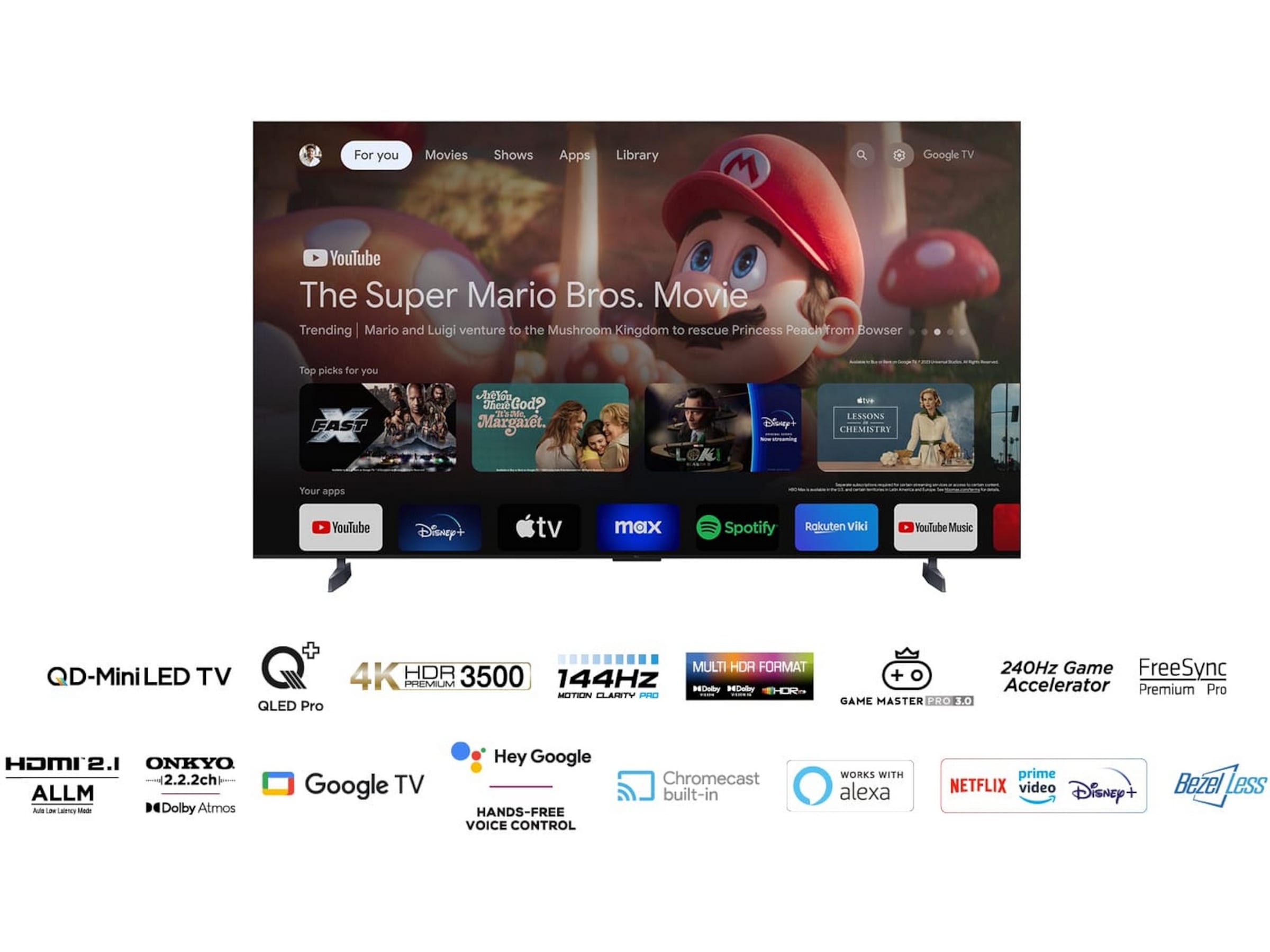 Google TVs håndfrie talekontroller gir full fleksibilitet. Uten å forlate stolen kan du velge innhold, starte apper, slå på apparatet, bytte inngang, søke etter filmer og mye mer. Det er enkelt, brukervennlig og utrolig praktisk.