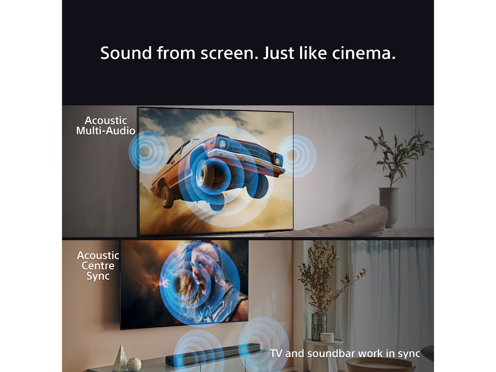 | Andre egenskaper | Sound Positioning Tweeter, Room Compensation, Crystal Clear, User Position Compensation, Acoustic Multi-Audio, Lydreturkanal (ARC), 360 Spatial Sound Mapping, Voice Zoom 3, Acoustic Center Sync, Bass Reflex Speaker System, Enhanced Audio Return Channel (eARC), Innebygd mikrofonbryter |