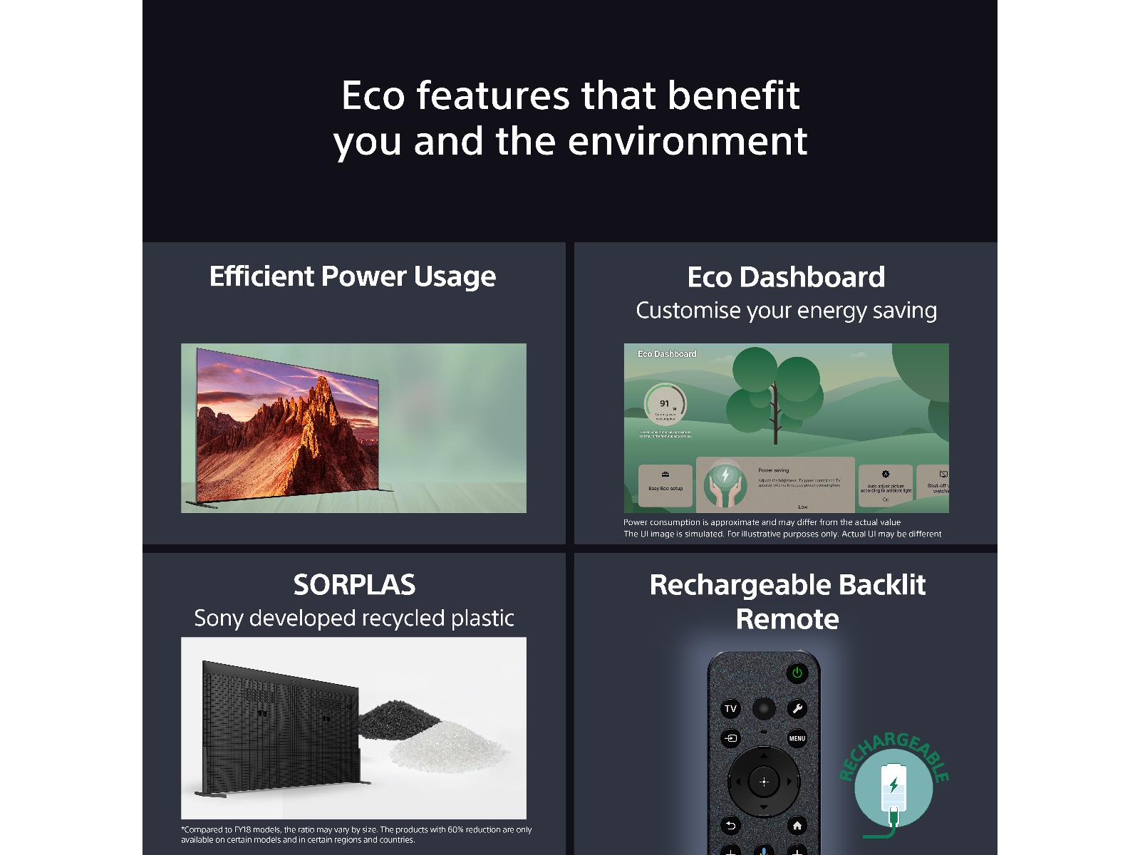 | Egenskaper | Tilgangssnarvei, ECO Dashboard, Støtte for Apple AirPlay, Innebygd Chromecast, CalMAN automatisk kalibreringsstøtte, PlayStation Remote Play, Audio Description (AD), Tekstforstørrelse, XR Triluminos Pro Display, Dynamic Backlight Control, Søvntidtaker |