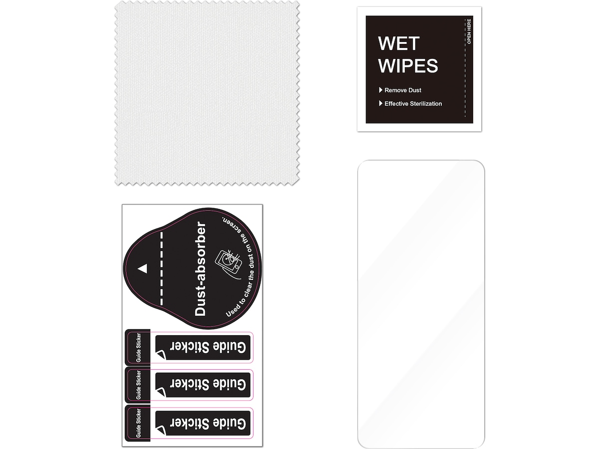 Skjermbeskytteren er enkel å sette på, og det følger med bruksanvisning.