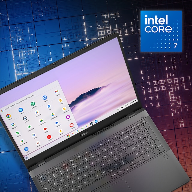 Powered by Intel® CoreTM 5 120U processor with Intel® Turbo Boost Technology 2.0, this Chromebook Plus offers more than just a performance score, advancing real-world computing and delivering efficient multi-tasking.