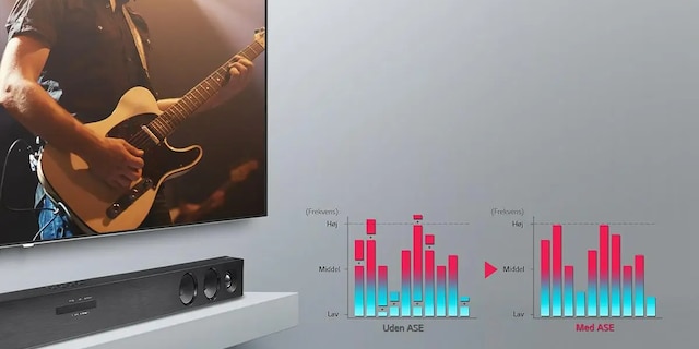 LG Auto Sound Engine optimaliserer lyden din på ethvert volumnivå og opprettholder presise frekvenser hele tiden. Dette gir passende lydbalanse uansett volum.