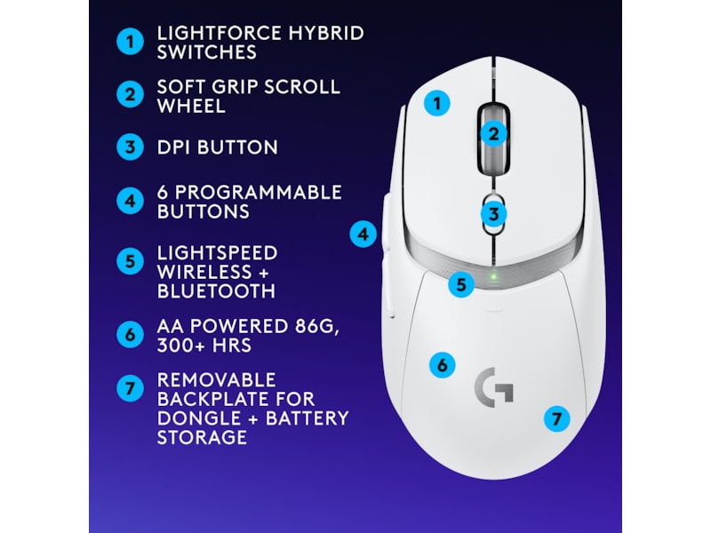 Flere bilder av Logitech G G309 Lightspeed Gamingmus (hvit)