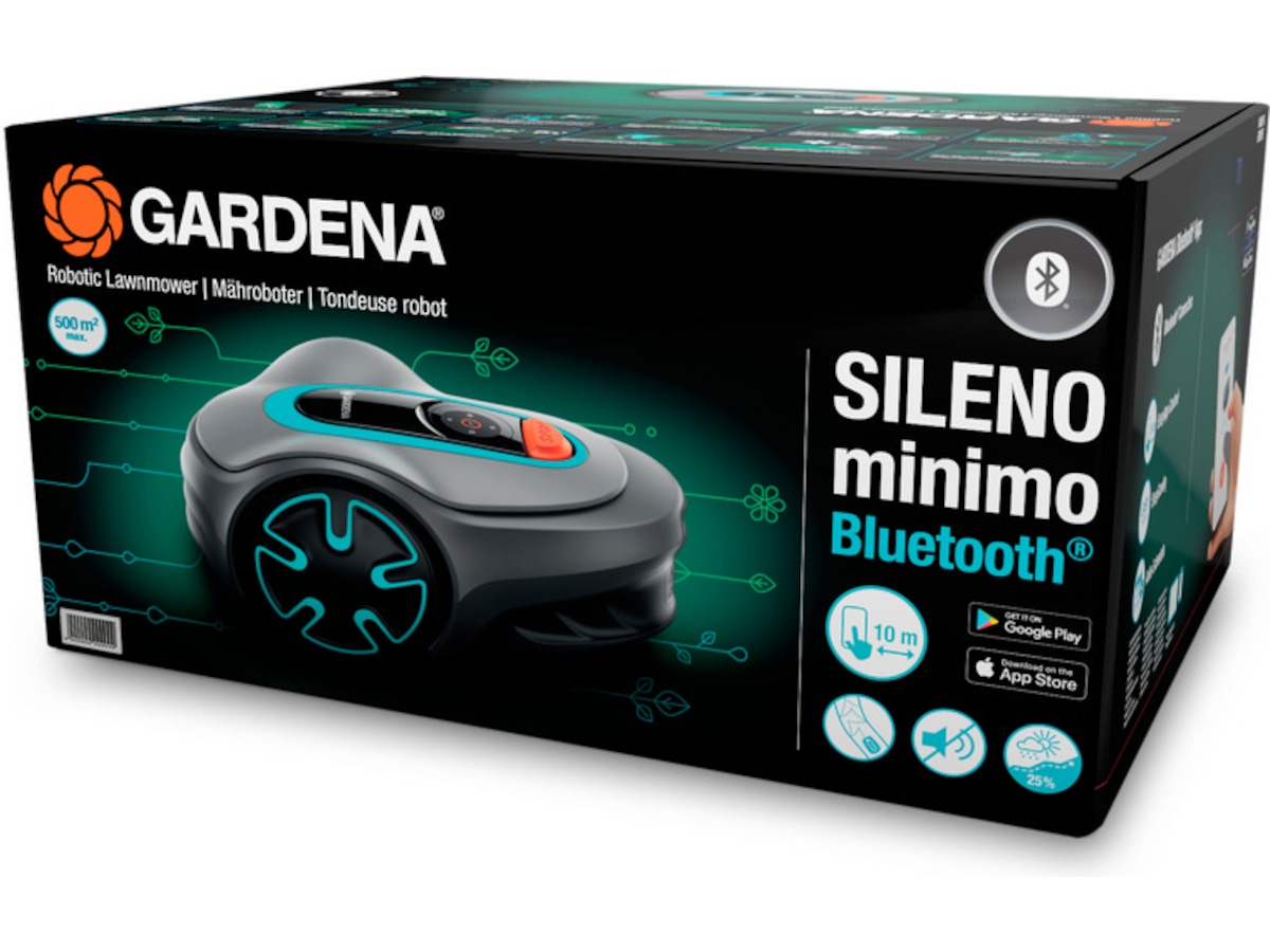 Robotgressklipperen SILENO minimo 500 m² – stillegående, allsidig og smart. Robotgressklipperen håndterer mindre plener på opptil 500 m², og kombinerer høy ytelse og presisjon på en imponerende måte. Oppgi plenens størrelse i GARDENA Bluetooth App, og du kan enkelt stille inn plenstørrelse, ønskede klippedager og starttidspunkt via smarttelefonen.
