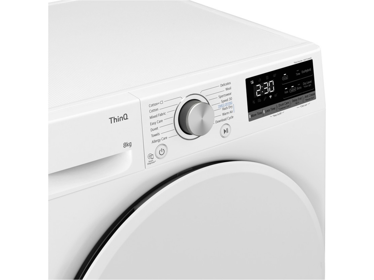 Tørketrommelen kan motta informasjon om vaskeprogrammet fra din LG vaskemaskin (Wi-Fi), og vil automatisk stille inn en tilpasset tørkesyklus for å gi klærne den mest skånsomme klespleien.