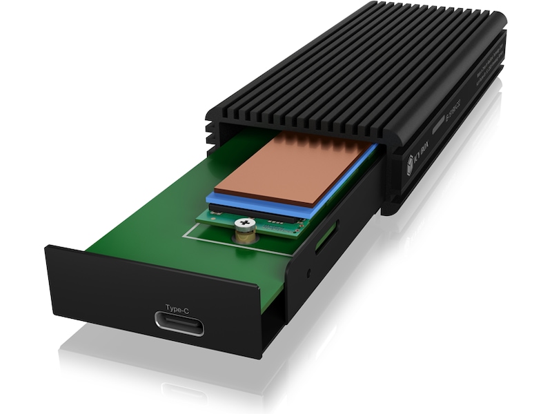 - COOLING: The heat inside the heat sink is ideally conducted to the outside of the enclosure via the heat sink and the silicone heat pad. This keeps the NVMe SSD cool even under full load
