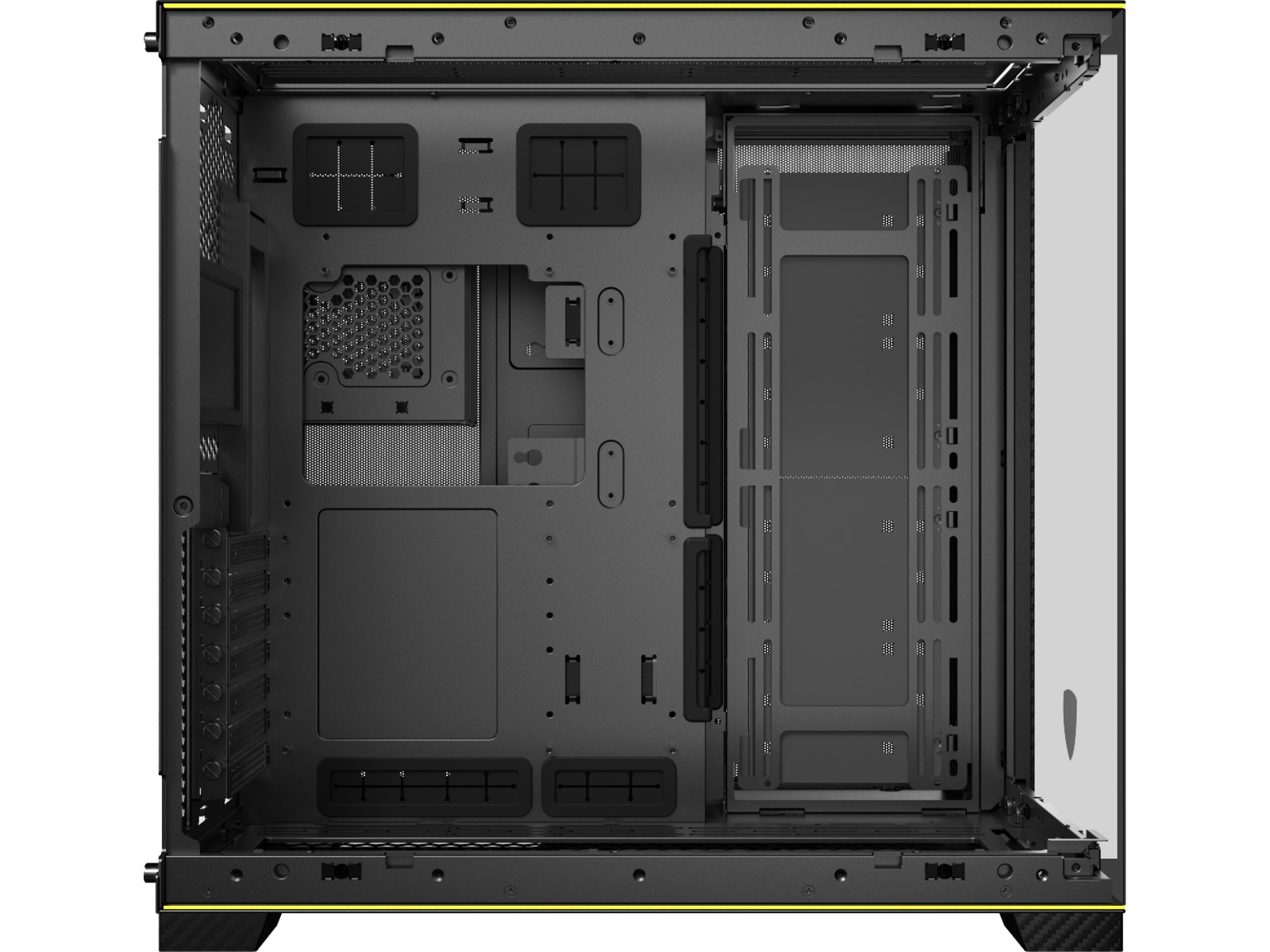 De distinkte detaljene i materialene og Giallo Orion-fargeaksentene er sømløst integrert i hele kabinettet, og utstråler en umiskjennelig aura av luksus og ytelse. Selv RGB-lyslistene er forhåndsinnstilt med Giallo Orion Pantone-fargen, noe som forlenger den spennende opplevelsen til Automobili Lamborghini. Denne nøye kurerte kombinasjonen av materialer og belysning forsterker ikke bare den estetiske appellen, men tilfører også prosjektet den konkurranseånden som er avgjørende for de mest spennende eventyrene.