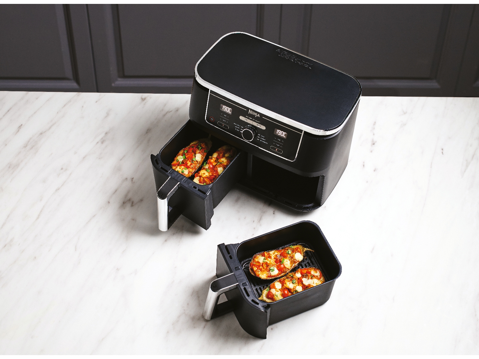 Vil du bake i en boks og luftsteke i en annen? Ikke noe problem! Ulike steketider for grillet kylling og sprø pommes frites? Begge sonene er klare samtidig slik at du kan nyte nylagde hovedretter og tilbehør sammen - du trenger ikke bruke forskjellige apparater eller la sideretten avkjøles mens hovedretten er klar!