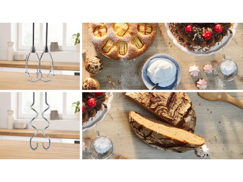 Bytt enkelt mellom deigkrokene og piskene. Med et tastetrykk fjernes verktøyene enkelt. For skifting av verktøy eller til rengjøring i oppvaskmaskinen etter bruk.