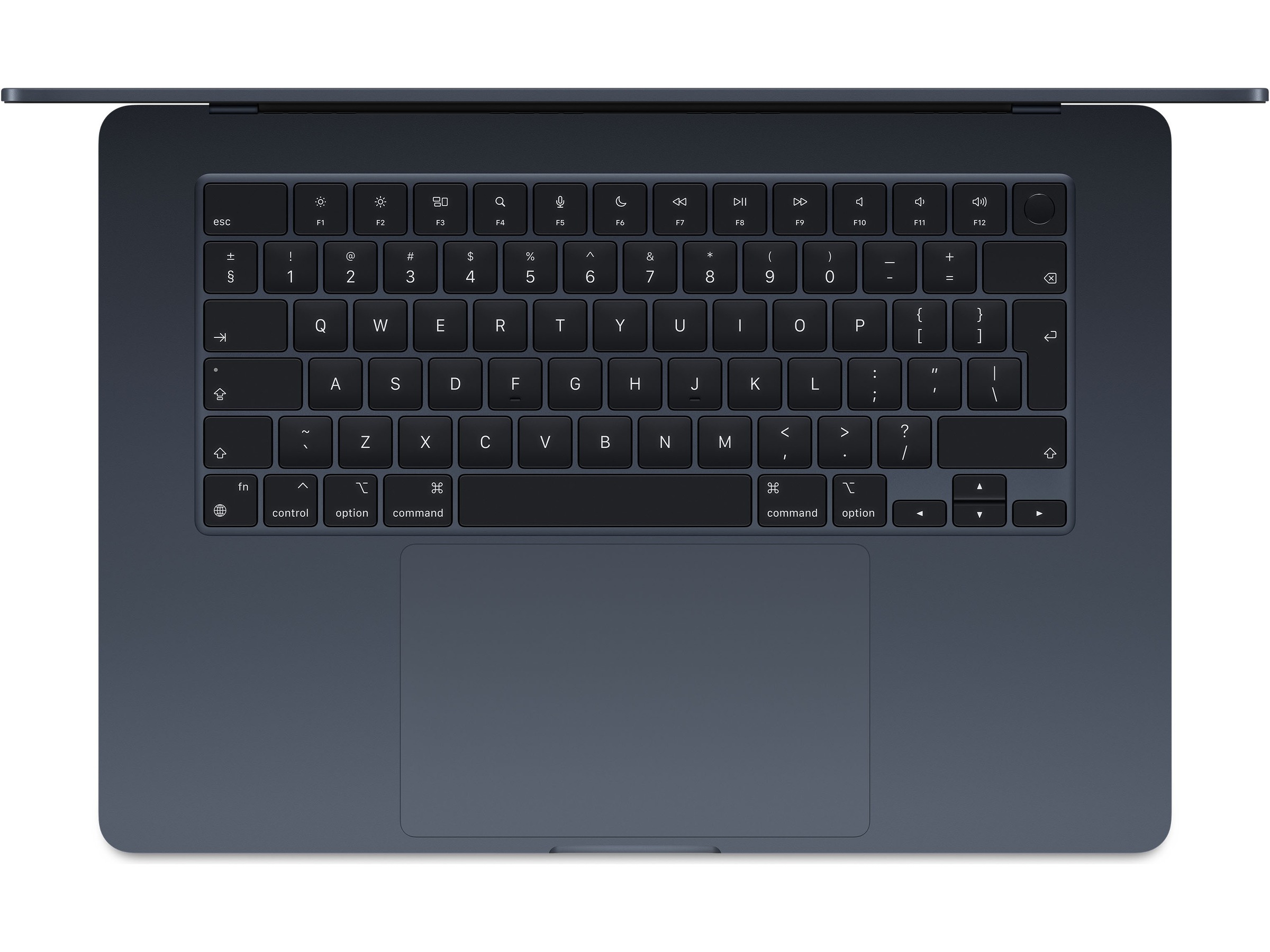 2) Skjermen på 15-tommers MacBook Air har avrundede hjørner på toppen. Skjermen måler 15,3 tommer på diagonalen i et rektangel. (Den faktiske synlige skjermflaten er mindre.)