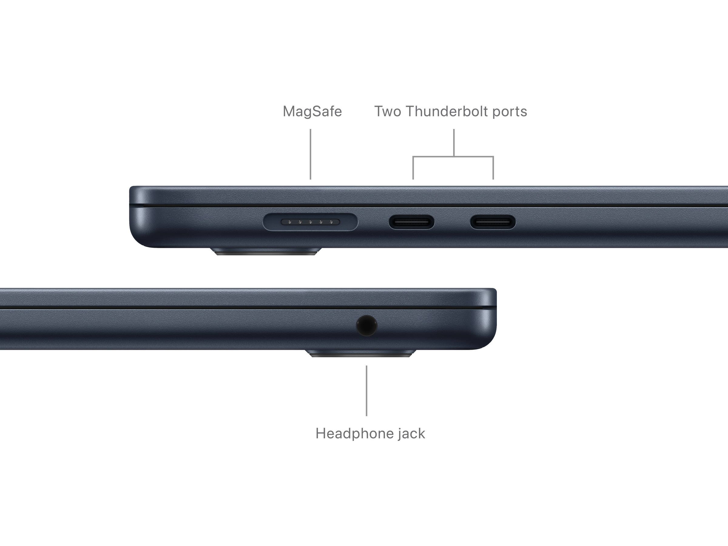 - FULLKONTAKT – MacBook Air har to Thunderbolt-porter, en hodetelefonutgang, wifi 6E,(4) Bluetooth 5.3 og en MagSafe-ladeport. Koble til opptil to eksterne skjermer med maskinen lukket.
