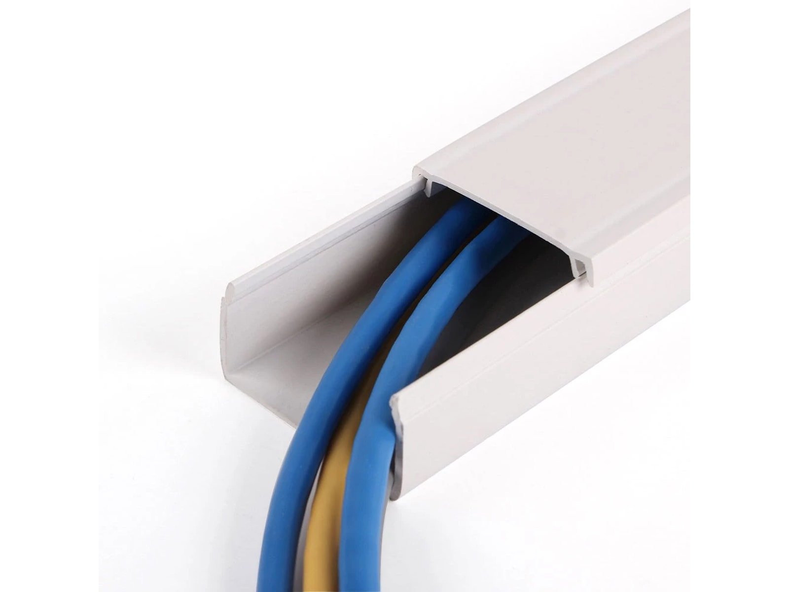 Den praktiske, avtakbare overdelen gjør det enkelt å legge inn kabler bak TV-en eller mellom høyttalere og stereoanlegg. Kabelkanalen er utstyrt med forborede hull for enkel veggmontering, og kan også festes med lim om ønskelig. Den hvite overflaten kan males, slik at du kan tilpasse fargen til resten av interiøret i hjemmet ditt.