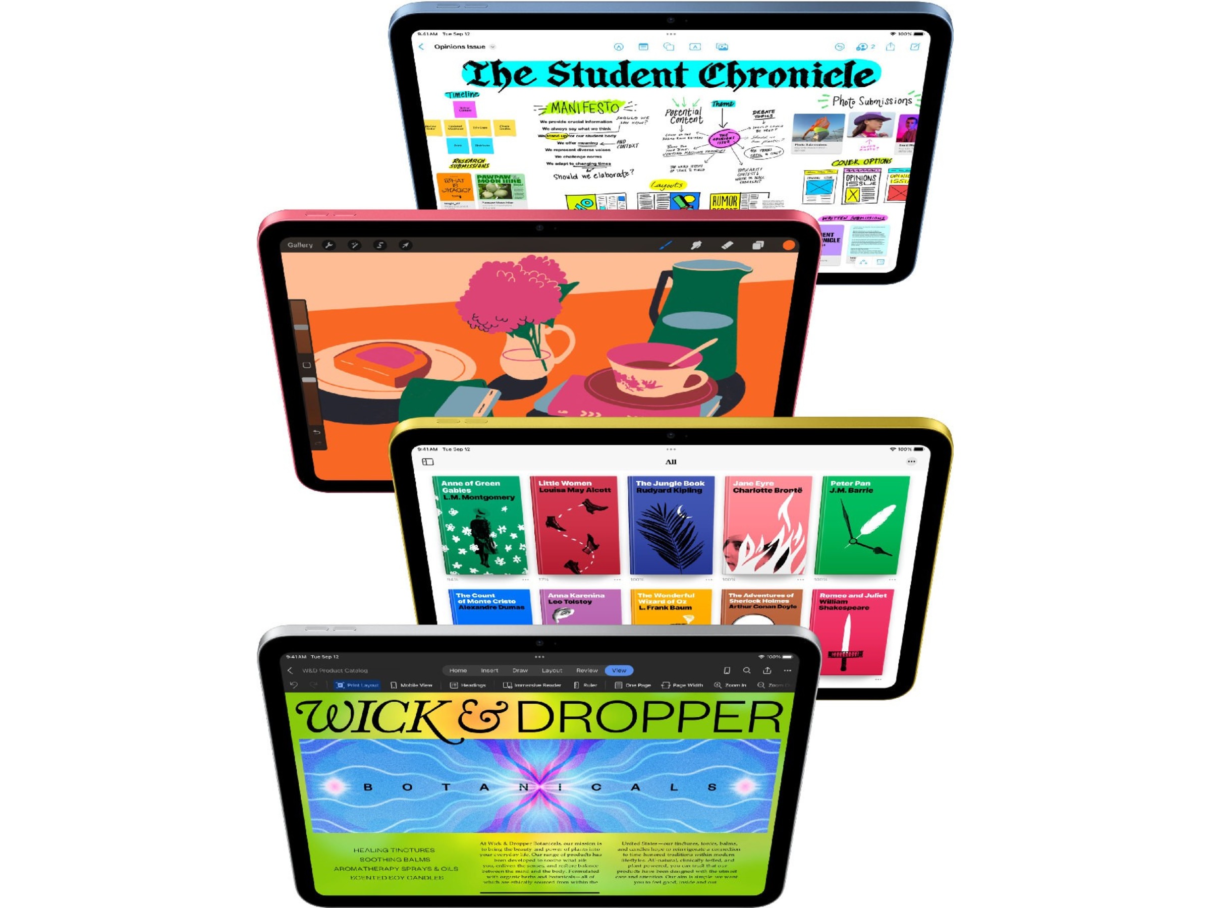 Gjenskapt med friske farger, og mer allsidig enn noensinne. Med helskjermdesign, 10,9-tommers LiquidRetina-skjerm¹ og fire herlige farger gjør iPad det enkelt å få ting gjort, være kreativ og holde kontakten med alt og alle.