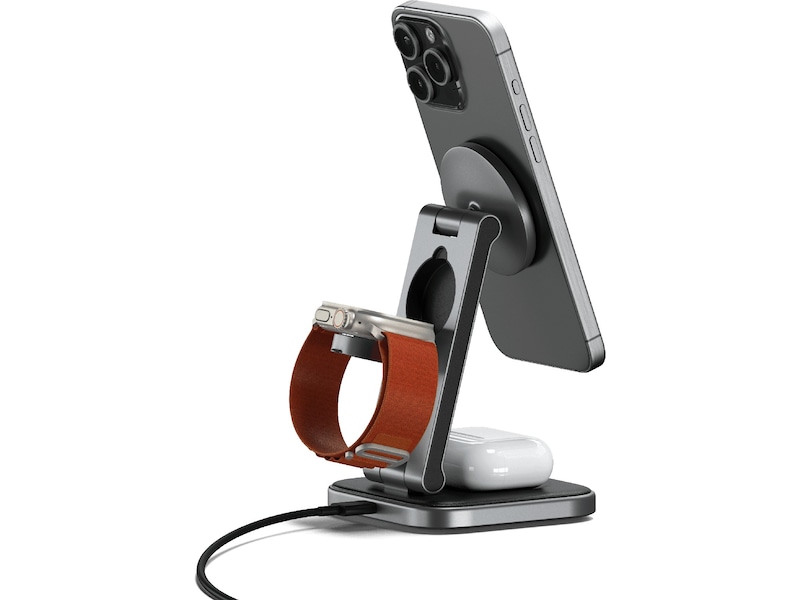 Satechi 3-i-1 sammenleggbart Qi2 trådløst ladestativ