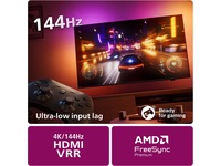 | Egenskaper | Sunrise Alarm, FreeSync Premium, AmbiSleep, Tilpasning til veggfargen, One touch Play, Ambilight FTI Animation |