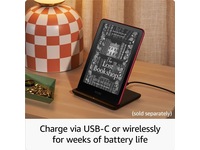 A single charge via USB-C lasts up to 12 weeks. Or power up with the Made for Amazon Wireless Charging Dock (sold separately).
