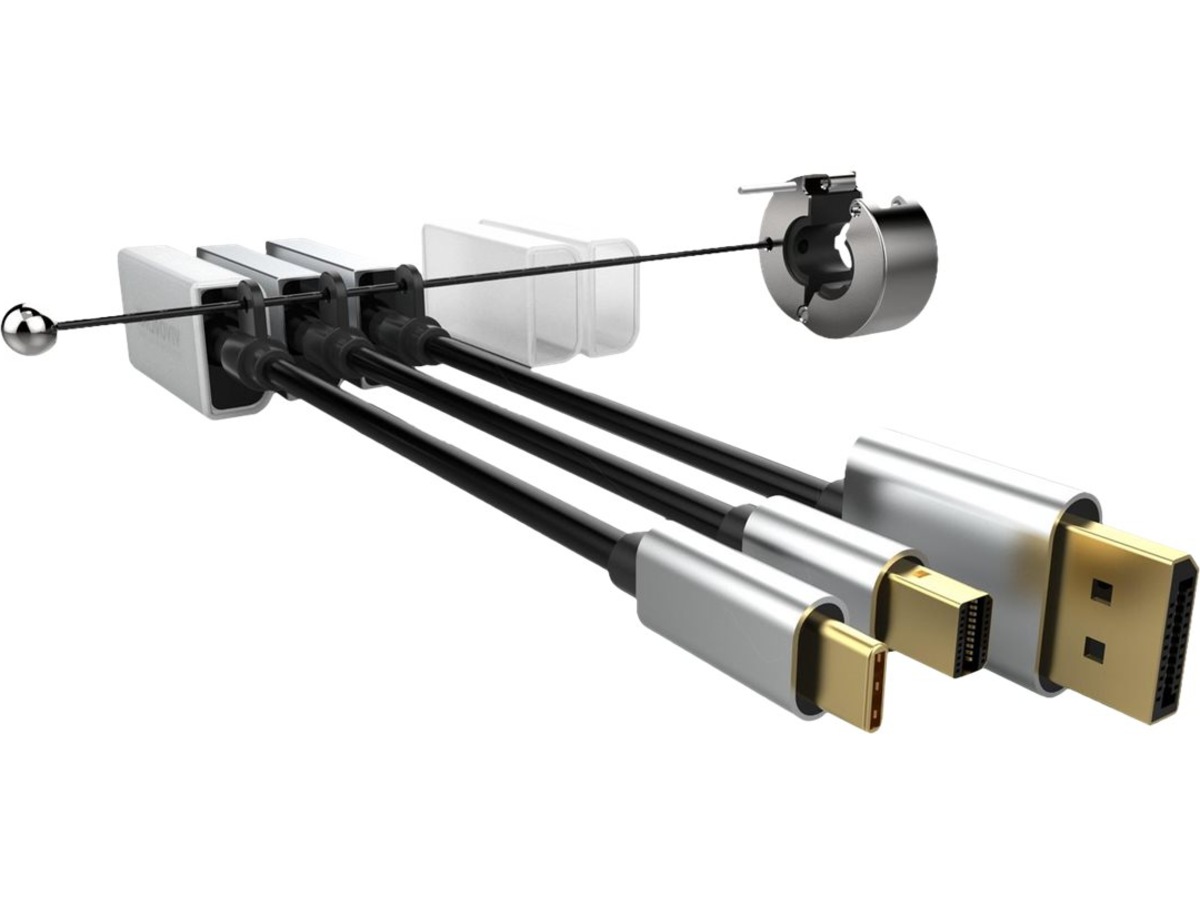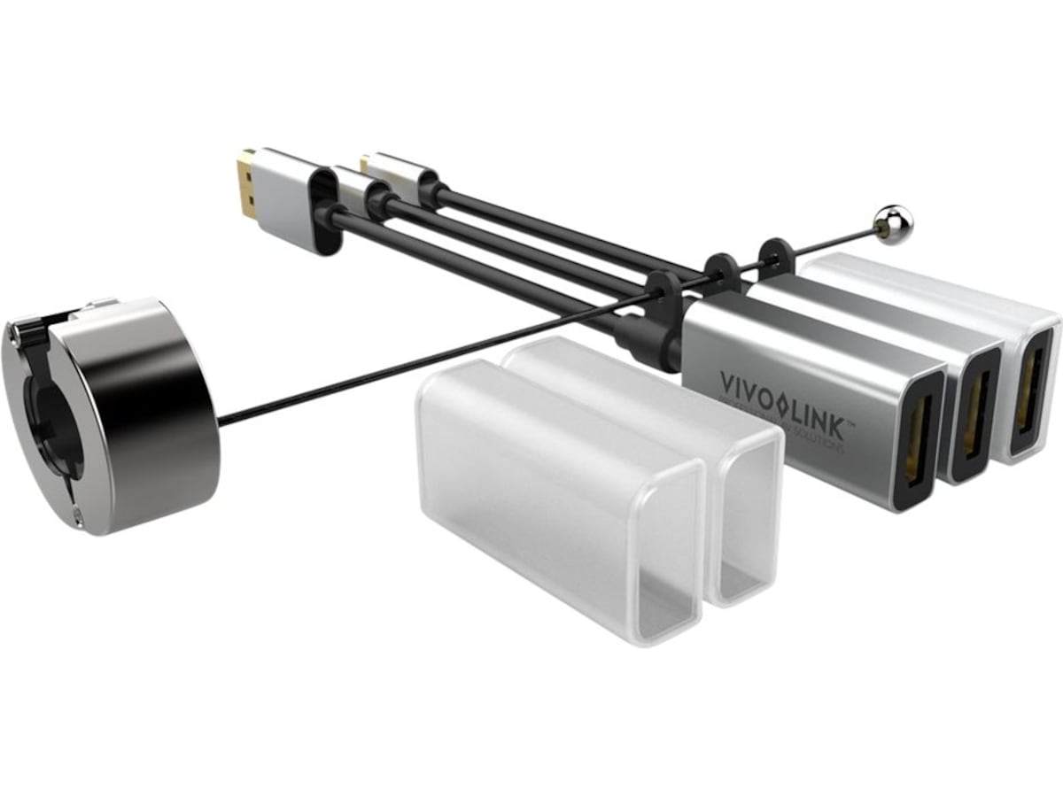 Med en Vivolink HDMI Adapter-ring sikkert låst til HDMI-kabelen i møterommet, er alt klart når det trengs. Adapterringen leveres med en spesiallås for HDMI-kabel, slik at den ikke kan fjernes uten verktøy.