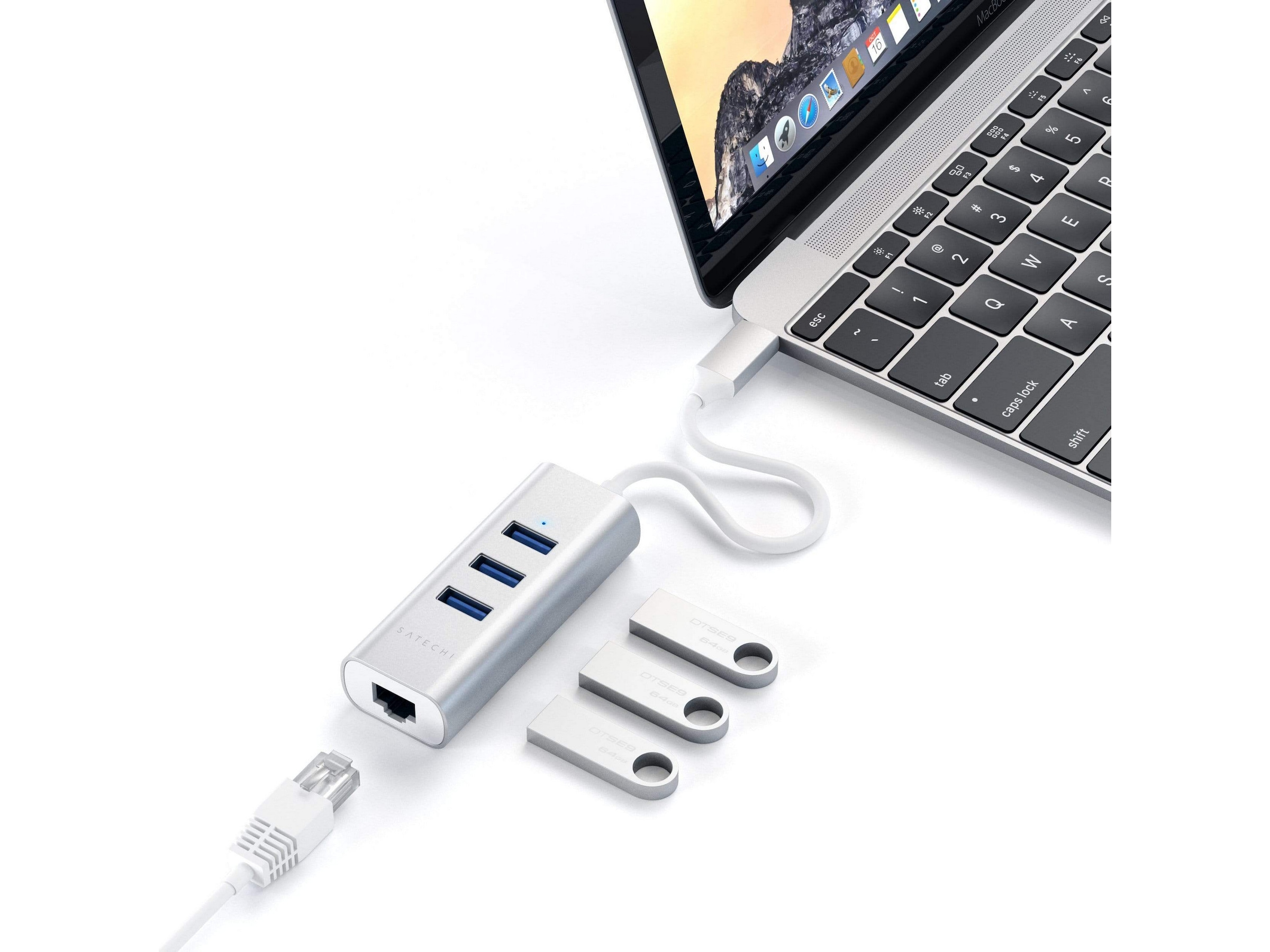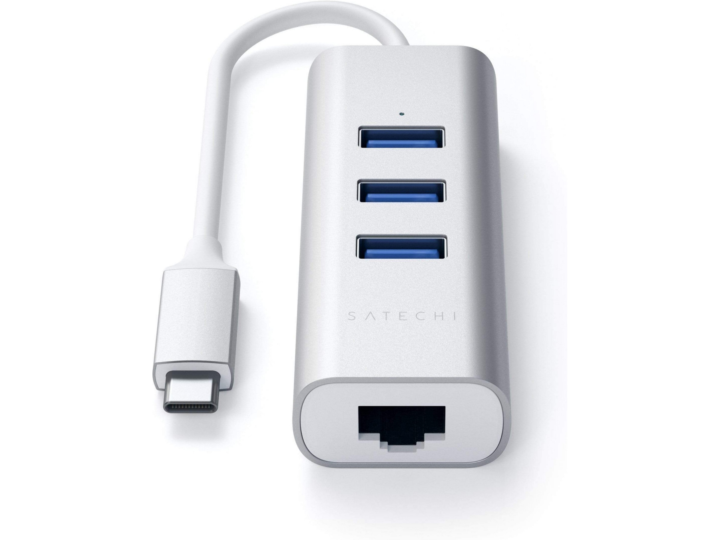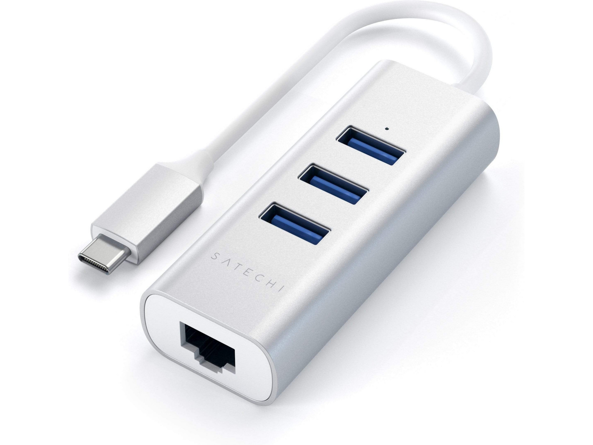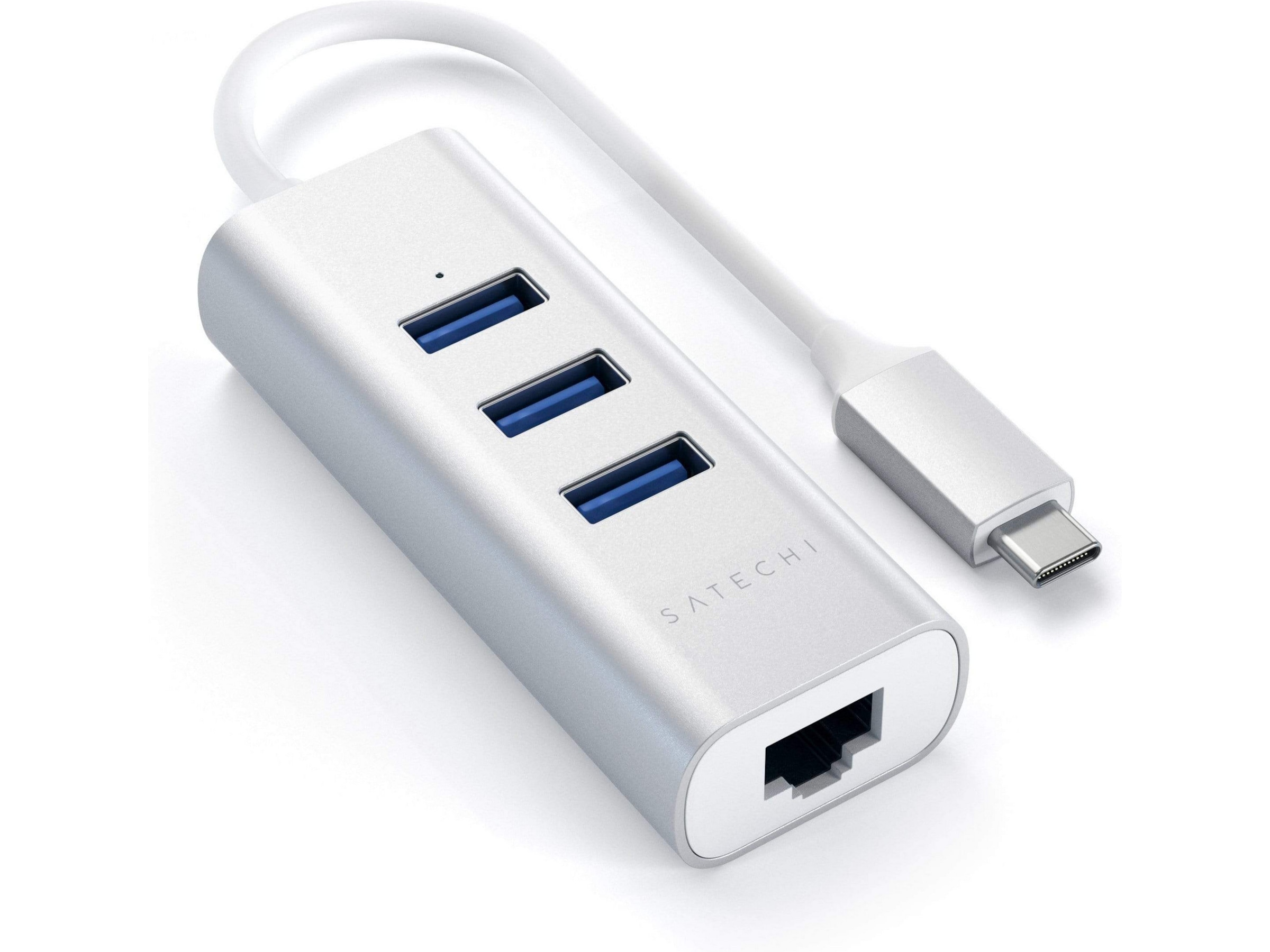 Satechi Type-C 2-i-1 USB 3.0 Aluminium 3 Port Hub og Ethernet-port er en nettverksløsning med høy hastighet for bærbar PC eller stasjonær PC-brukere. Den gjør det mulig å koble direkte til nettverket via USB-port, og eliminerer bryderiet med å demontere datamaskinen. Adapteren lar deg umiddelbart koble til et 10/100/1000 Mbps nettverk fra en tilgjengelig USB-port på datamaskinen din.