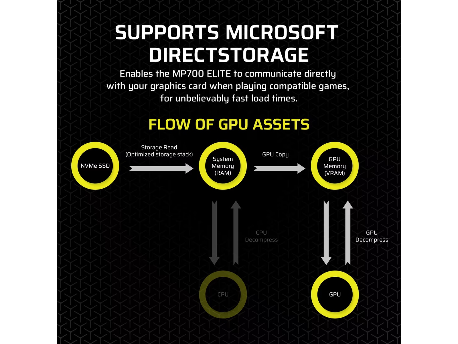 Gjør det mulig for MP700 ELITE å kommunisere direkte med grafikkortet ditt når du spiller kompatible spill, for utrolig raske lastetider.