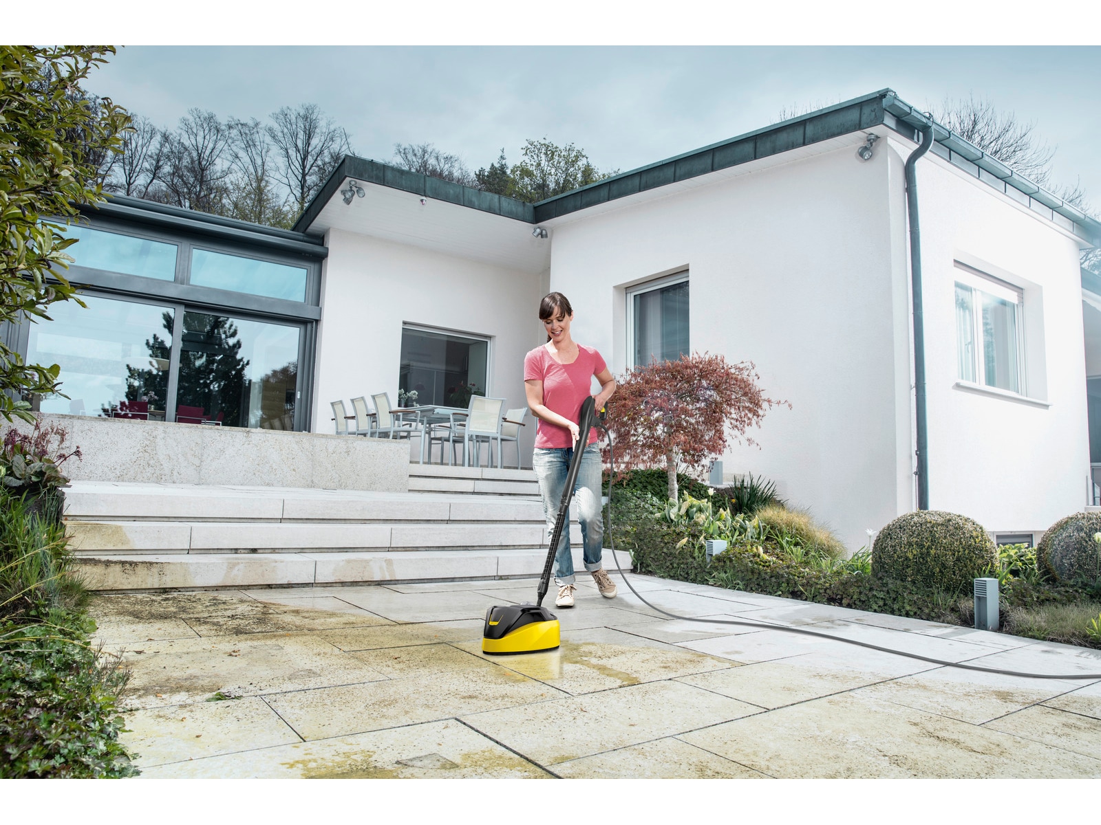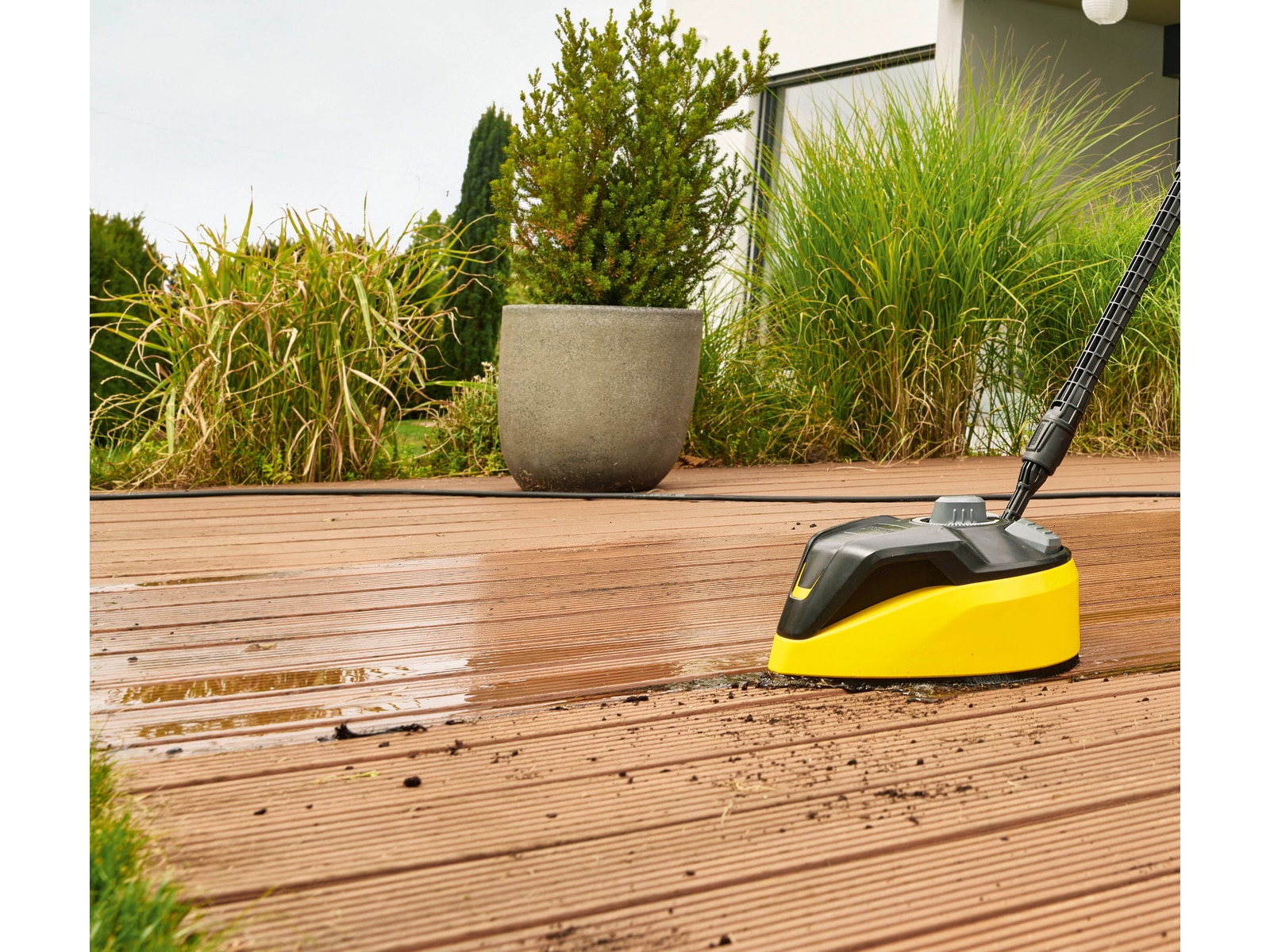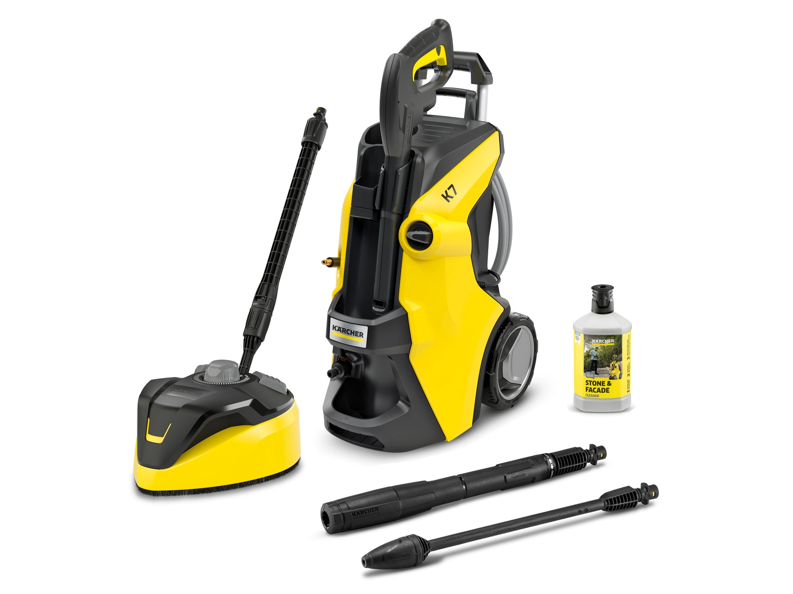 Med K 7 Power Flex Home høytrykkspyler kan hver overflate rengjøres med riktig trykk. Applikasjonskonsulenten integrert i Kärcher Home & Garden-appen hjelper brukeren med å finne riktig trykk ved å gi praktiske tips om enhver rengjøringssituasjon og rengjøringsoppgave – for perfekte rengjøringsresultater. K 7 Power Flex Home er utstyrt med en vannkjølt motor, og er designet for hyppig rengjøring samt for å takle tungt smuss. Det omfattende utstyrsutvalget inkluderer en avtrekkerpistol med en praktisk Quick Connect-adapter via en PremiumFlex høytrykksslange, et pålitelig vannfilter som beskytter pumpen, en Vario Power-spraylanse ( VPS) og en Dirt Blaster med en roterende spotjet. Trykkinnstillingen på VPS kan justeres med en enkel vridningsbevegelse, og Dirt Blaster gjør kort arbeid med selv det mest gjenstridige smuss. Andre utstyrsdetaljer inkluderer vaskemiddelsystemet Plug 'n' Clean, teleskophåndtaket i aluminium og parkeringsposisjonen for lett tilgjengelig tilbehør. Inkluderer hjemmesettet med T 7 overflaterens og 1 liter stein- og fasaderens.