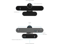 Ved å sikre at hver samarbeidspartner blir sett og hørt, har denne alt-i-ett-enheten et 4K Ultra HD-webkamera med 120° vidvinkelobjektiv, integrert 6-delt mikrofon og doble høyttalere. Dens lavbelysnings 8,5 MP-sensor vil fange et klart bilde av rommet, mens dens 5X digitale zoom støtter elektronisk PTZ for å fokusere på taleren. Den har en sammenleggbar, skridsikker gummibase for plassering på toppen av en monitor eller på hvilken som helst flat overflate, men kan også monteres på hvilken som helst vegg for optimal bruk. Uansett hvor den plasseres, kan mikrofonene plukke opp lyd fra 20 fot (6 meter) unna, og høyttalerne er optimalisert på frekvensområdet 200–16 000 Hz for å gi klar tale og lyd som om dere alle er i samme rom.