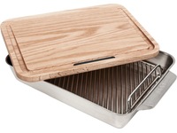 Den inkluderer en premium hvit eik skjærefjøl med et innovativt skrått design og spor for å samle opp alle de deilige stekesausene til smakfulle sauser og gryteretter.