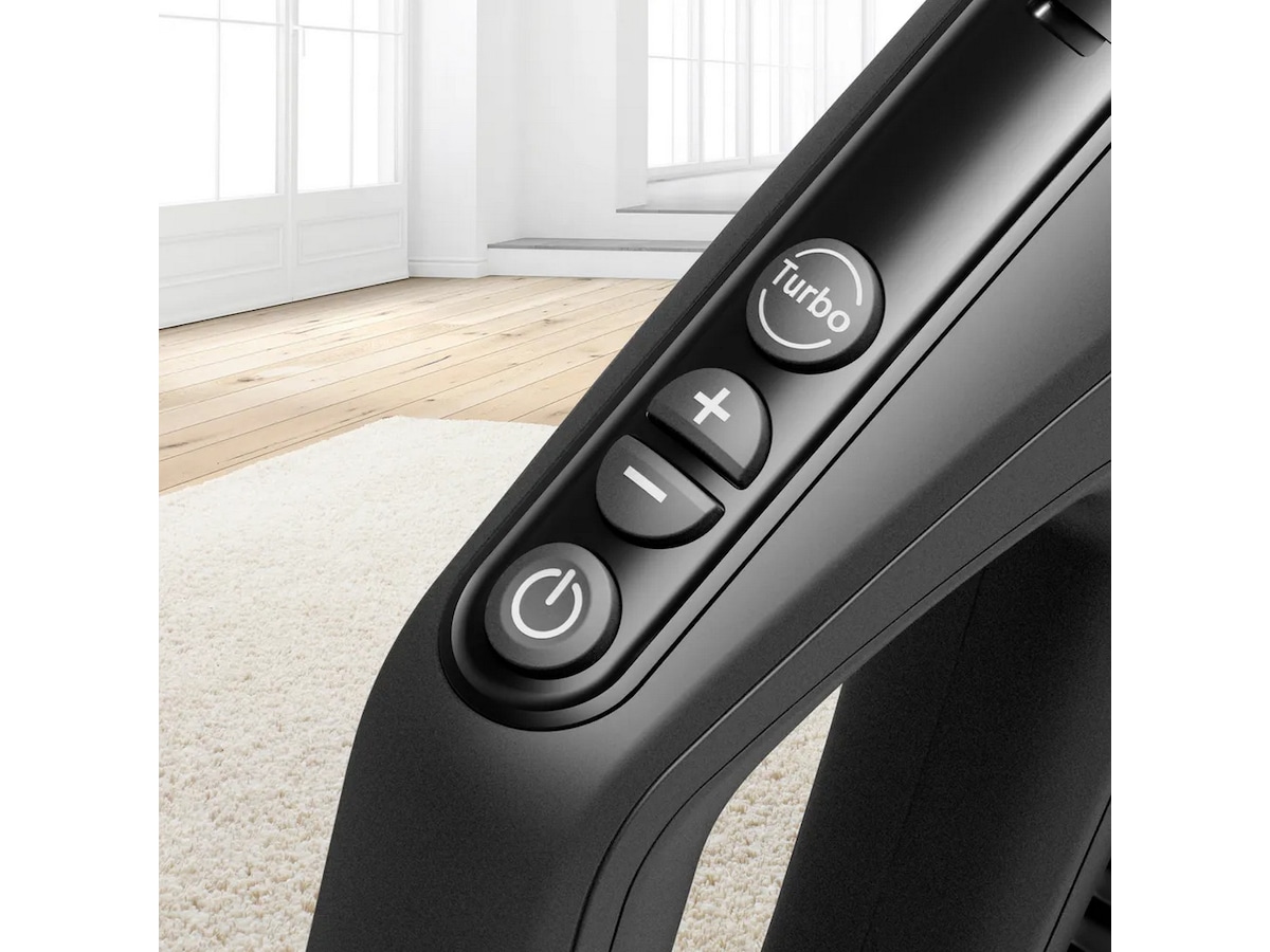Nå trenger du ikke å bøye deg ned og justere effekten på støvsugeren lenger. Fjernkontrollen lar deg justere strømmen direkte fra håndtaket ved å trykke på en knapp. Juster mellom turbo-, standby- eller ønsket effektnivå med et tastetrykk.