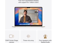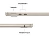 - KOBLE TIL ALT – MacBook Air har to Thunderbolt 4-porter, en MagSafe-ladeport, et hodetelefonuttak, wifi 6E og Bluetooth 5.3.(3) Og den støtter opptil to eksterne skjermer.