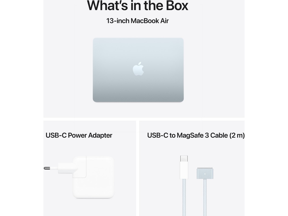 - KOBLE TIL ALT – MacBook Air har to Thunderbolt 4-porter, en MagSafe-ladeport, et hodetelefonuttak, wifi 6E og Bluetooth 5.3.(3) Og den støtter opptil to eksterne skjermer.