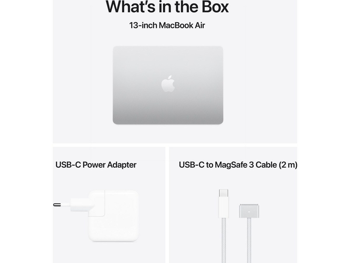 - KOBLE TIL ALT – MacBook Air har to Thunderbolt 4-porter, en MagSafe-ladeport, et hodetelefonuttak, wifi 6E og Bluetooth 5.3.(3) Og den støtter opptil to eksterne skjermer.