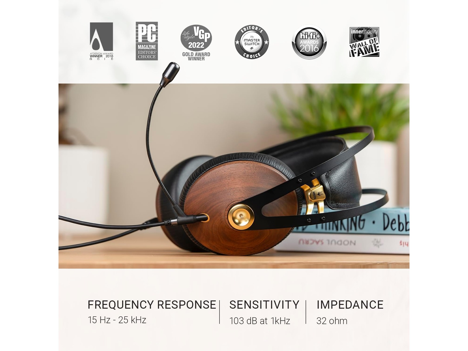 Det vertikalt seljusterende hodebåndet av vegansk lær, i kombinasjon med en fjærstålsramme med et stort aktivt område, gir et komfortnivå som har blitt rost gjennom hodetelefonindustrien.