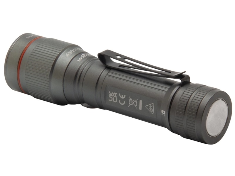 Flex-Power™ Teknologi gjør det mulig å drive lyset med en enkelt AA-batteri eller et litium-ion 14500 oppladbart batteri (inkludert). 450 FLEX har 6x justerbar zoom, et dobbelt-retnings klips og en kraftig magnetisk base for praktisk håndfri lys.