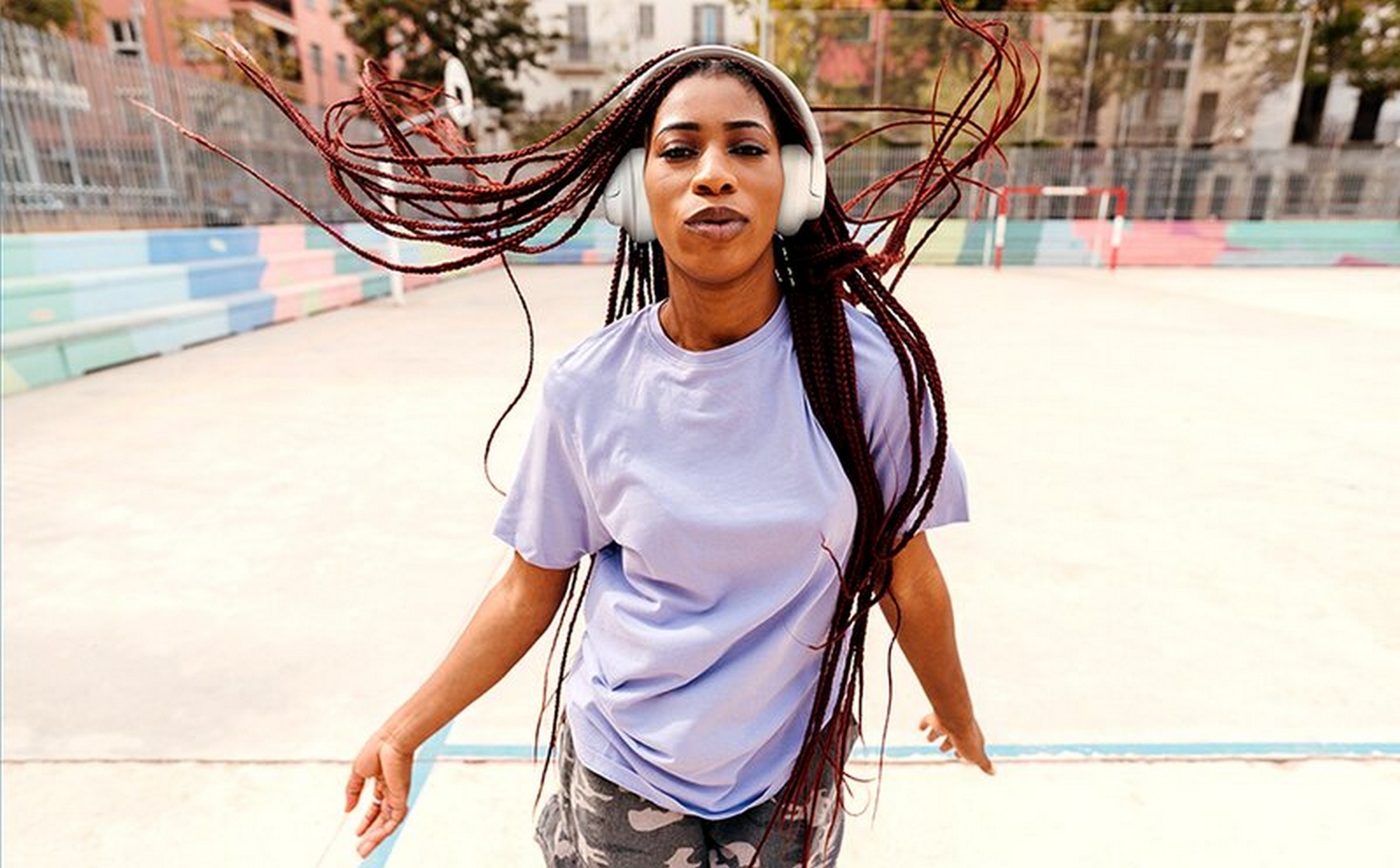 To stråleformende mikrofoner på hver ørekopp fanger opp talen din nøyaktig og reduserer bakgrunnsstøyen. Så enten du er i et telefonmøte på en kafé eller snakker med en venn mens du pendler, vil stemmen din høres klart og tydelig.