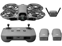 DJI Neo 2 Motion Fly More Combo Inkluderer dronen, RC Motion 3, Goggles N3, tre Intelligent Flight Batteries, en toveis ladehub, digital sender, propellbeskyttelse og ekstra tilbehør, for introduksjon til oppslukende førstepersonsopplevelse og forbedret filmopptak i én tagning.
