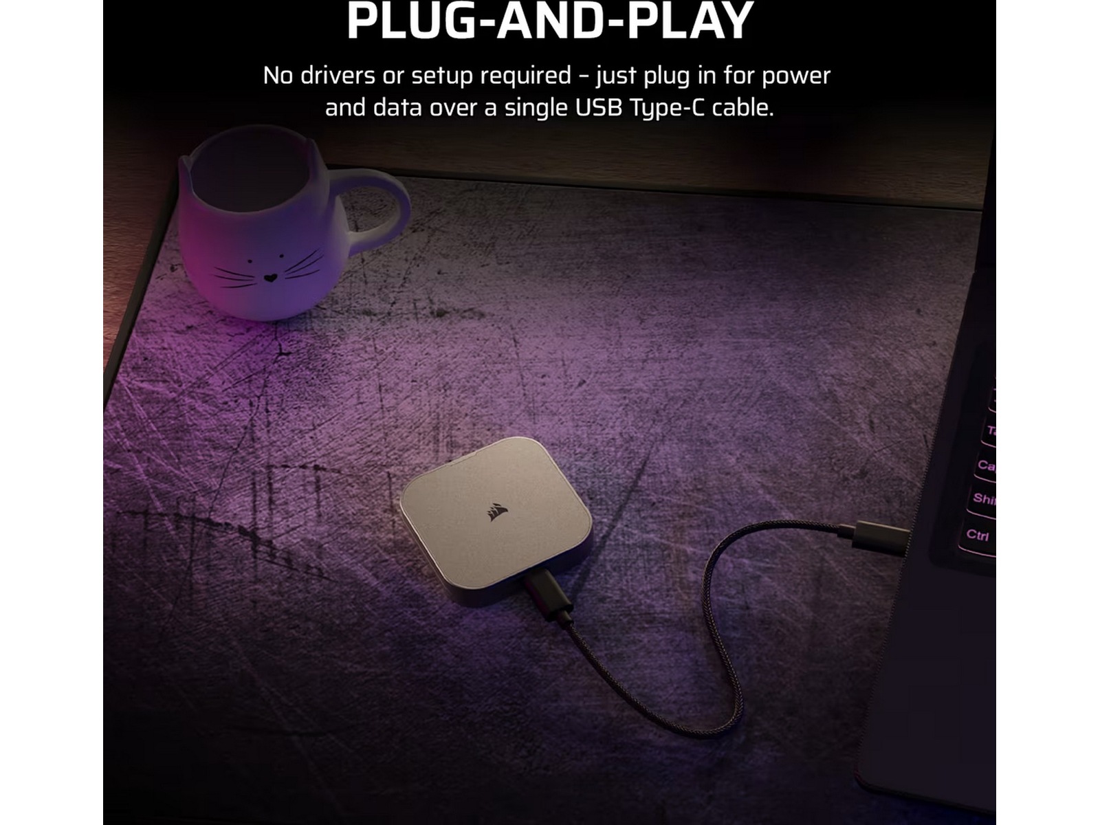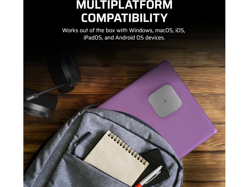 Kobles effektivt til via USB Type-C, og sikrer kompatibilitet med PC, Mac og iOS-enheter