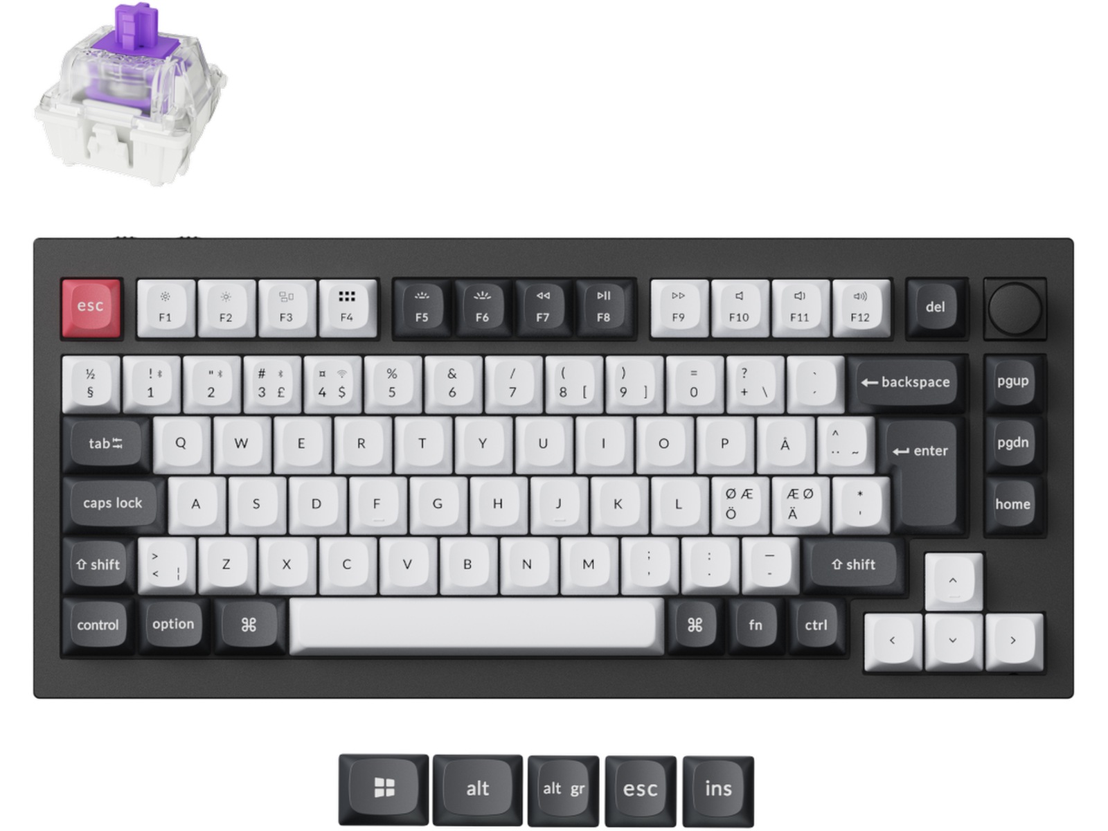 Keychron Q1 HE 75% QMK trådløst gamingtastatur (sort) -B-Grade