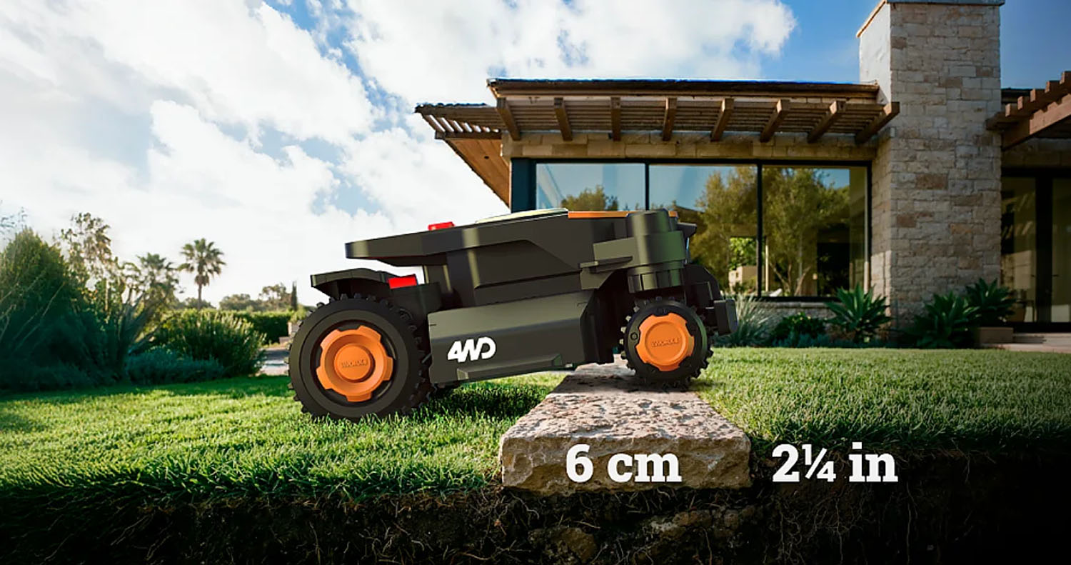 Worx Landroid Vision Cloud 4WD leverer presis navigasjon på alle typer terreng, og håndterer skråninger, ujevnt underlag og komplekse plenoppsett med overlegen ytelse.